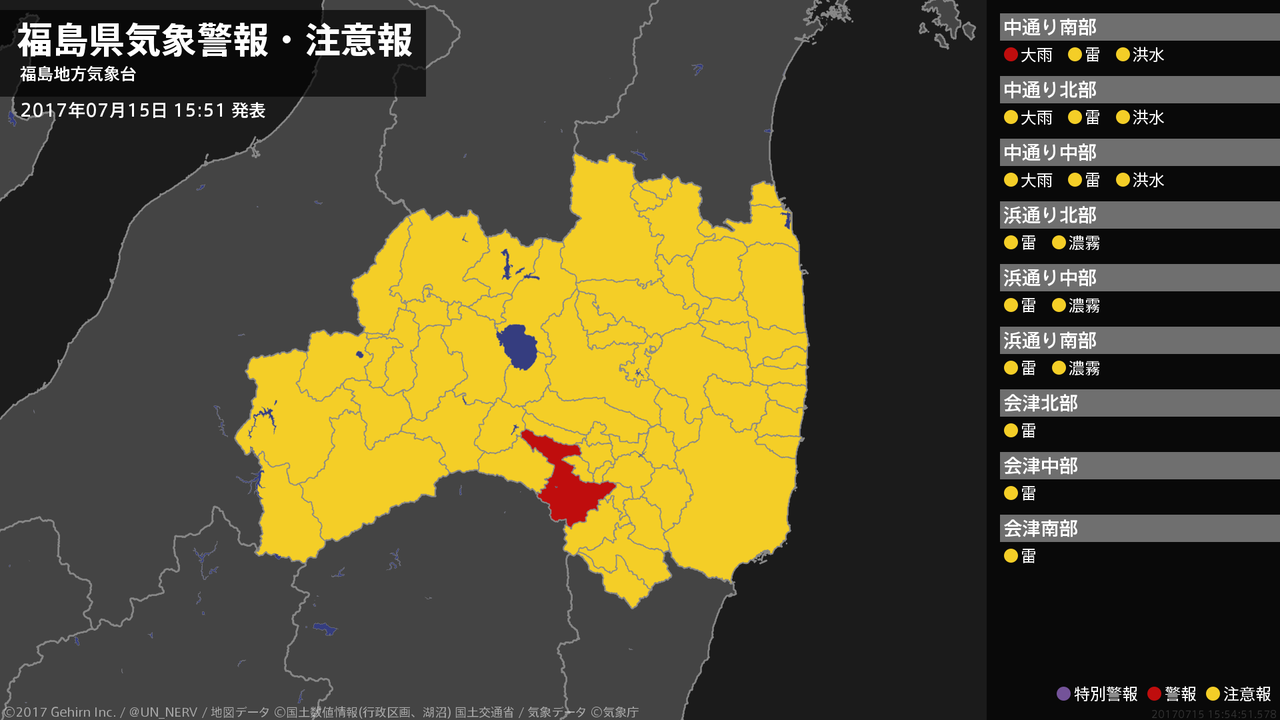 【福島県 気象警報 2017年07月15日 15:54】
