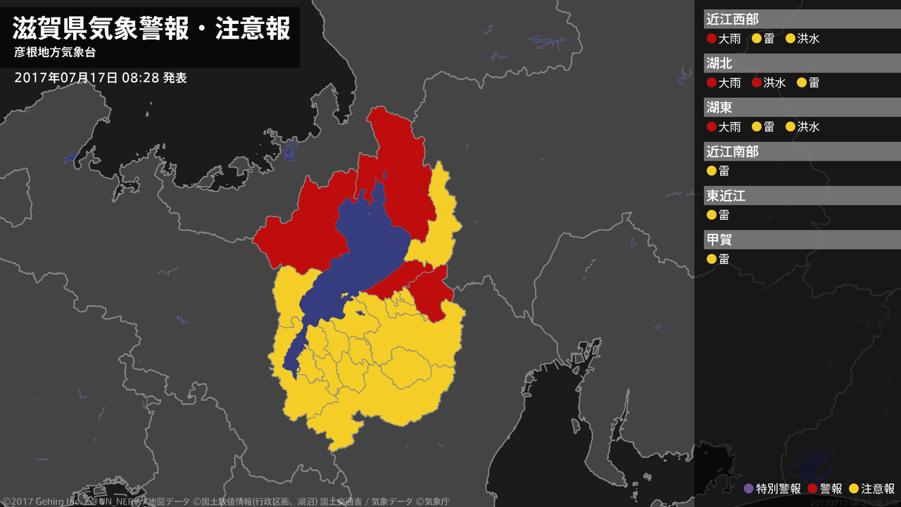 【滋賀県 気象警報 2017年07月17日 08:29】