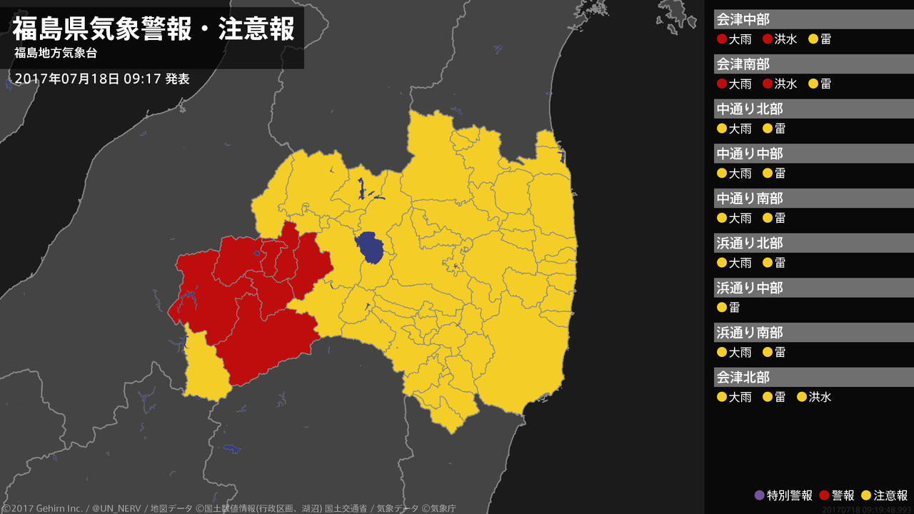【福島県 気象警報・注意報 2017年07月18日 09:19】