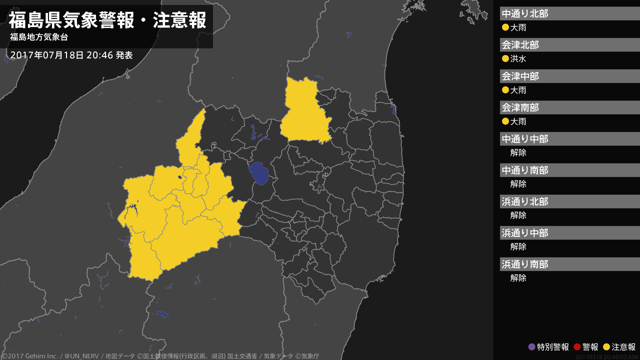 【福島県 気象警報(解除) 2017年07月18日 20:49】