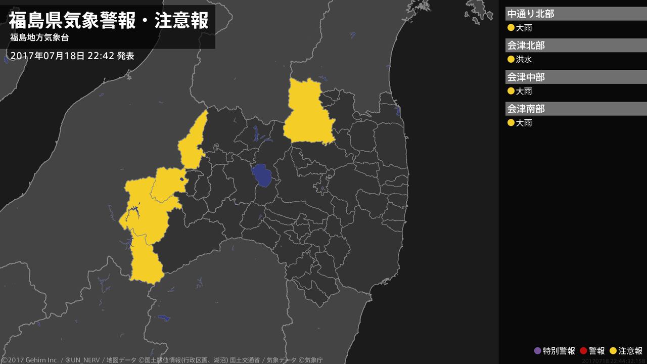 【福島県 気象警報・注意報 2017年07月18日 22:44】