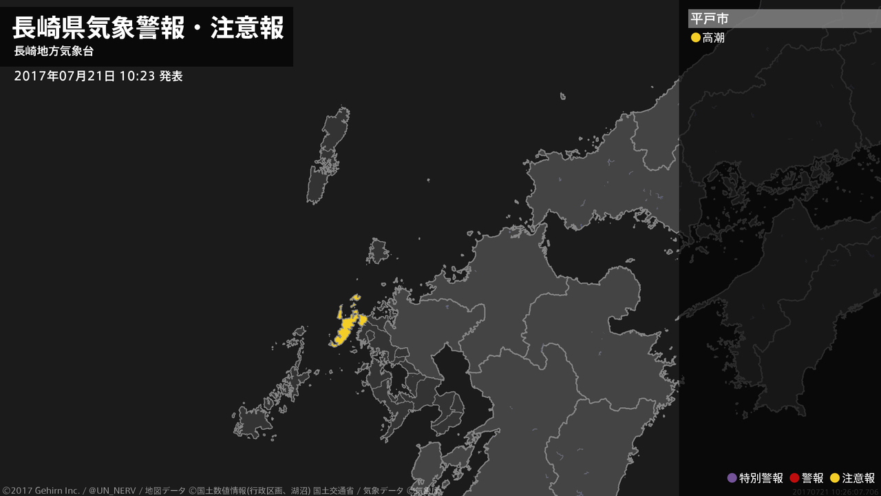 【長崎県 気象警報・注意報 2017年07月21日 10:26】北部では、ここしばらく高潮に注意してください。#気象警報注意報 #長崎県