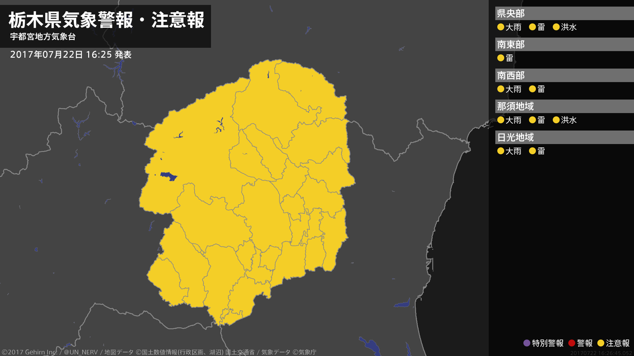 【大雨と雷及び突風に関する全般気象情報 2017年07月22日 16:35】