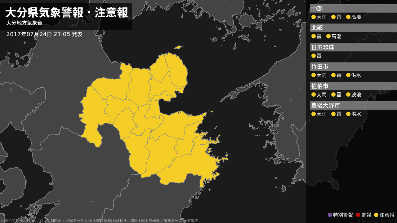 【大分県 気象警報・注意報 2017年07月24日 21:07】