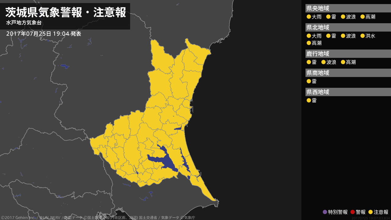 【茨城県 気象警報・注意報 2017年07月25日 19:07】