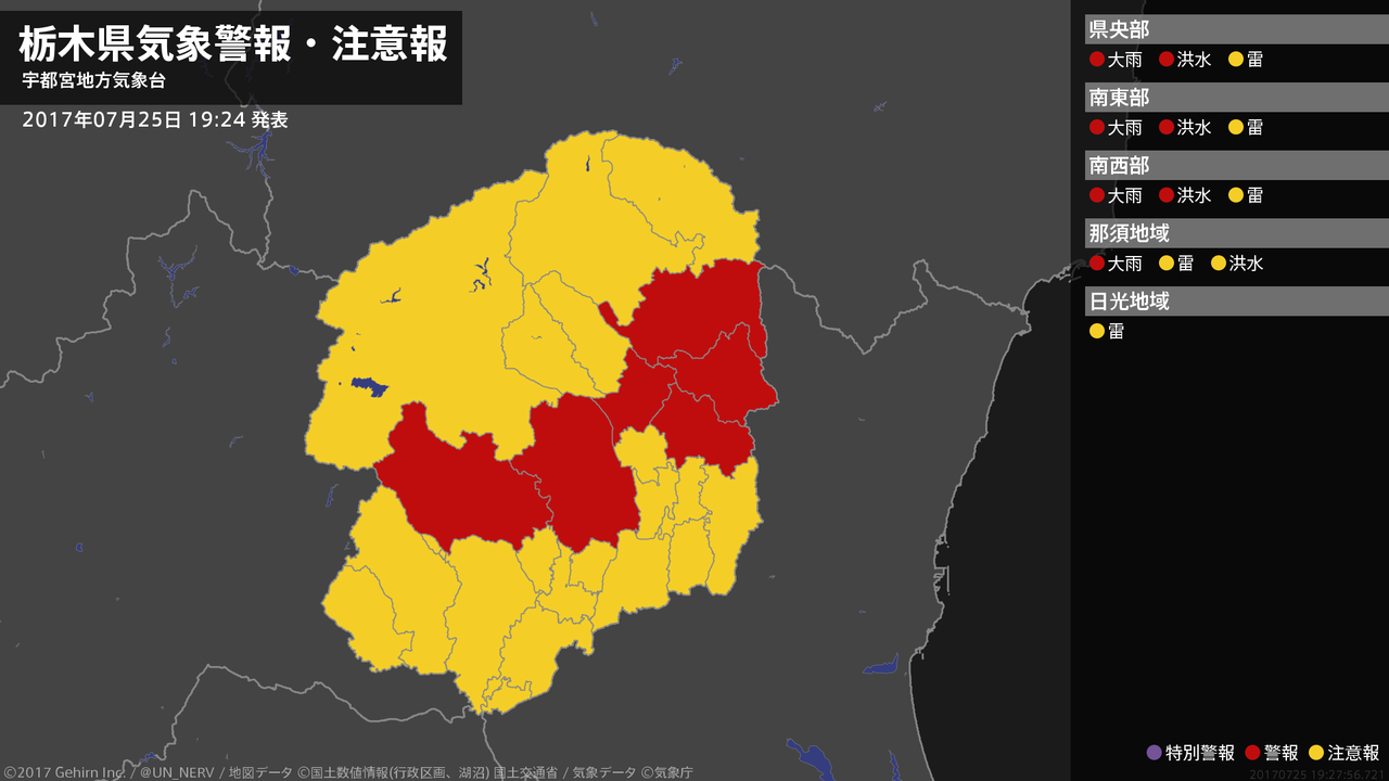 【栃木県 気象警報 2017年07月25日 19:27】