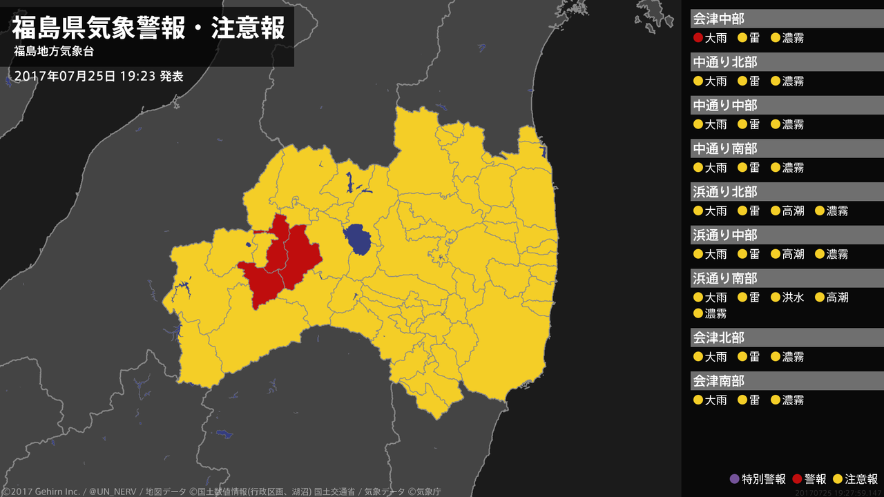 【福島県 気象警報・注意報 2017年07月25日 19:28】