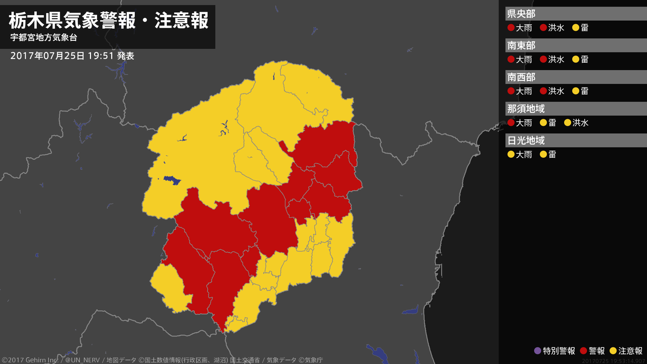 【栃木県 気象警報・注意報 2017年07月25日 19:53】