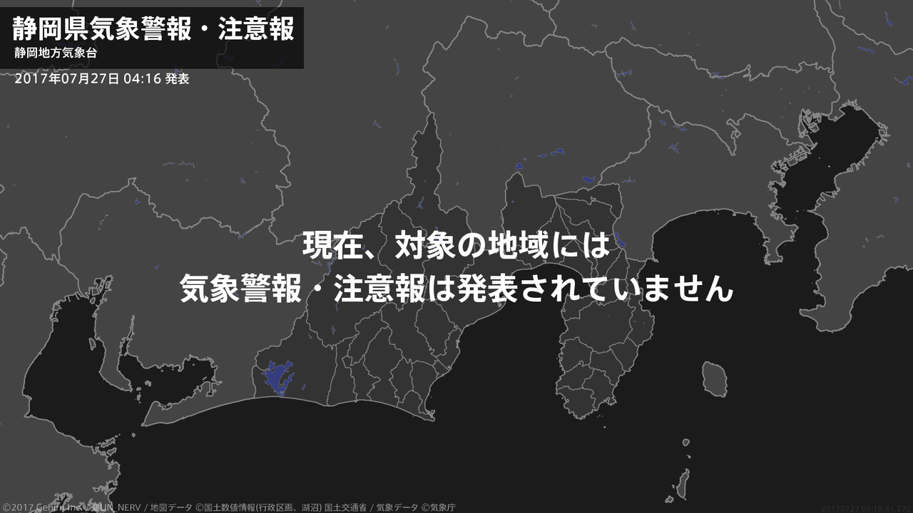 【静岡県 気象警報・注意報 2017年07月27日 04:18】注意報を解除します。#気象警報注意報 #静岡県