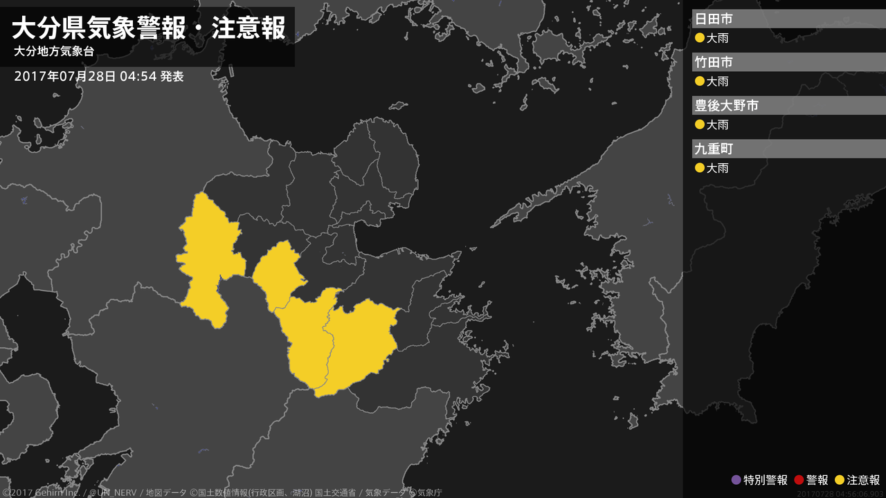 【大分県 気象警報・注意報 2017年07月28日 04:56】