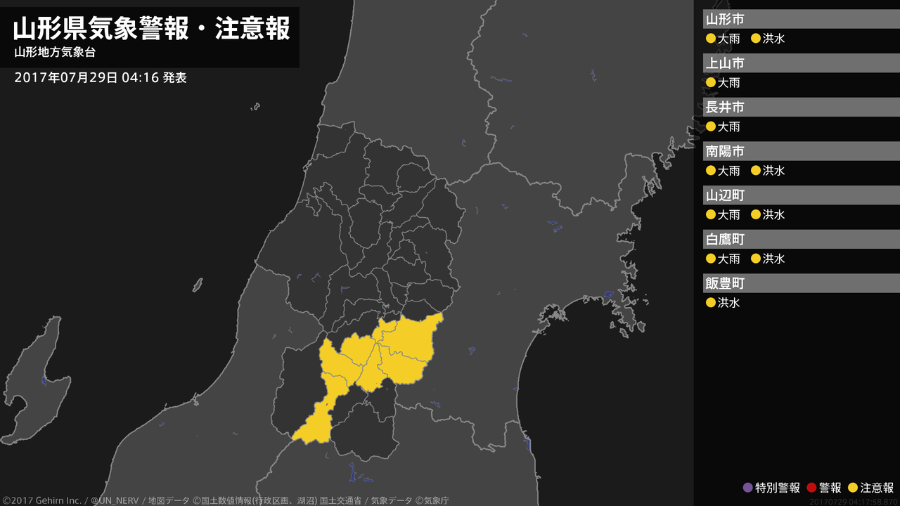 【山形県 気象警報・注意報 2017年07月29日 04:18】