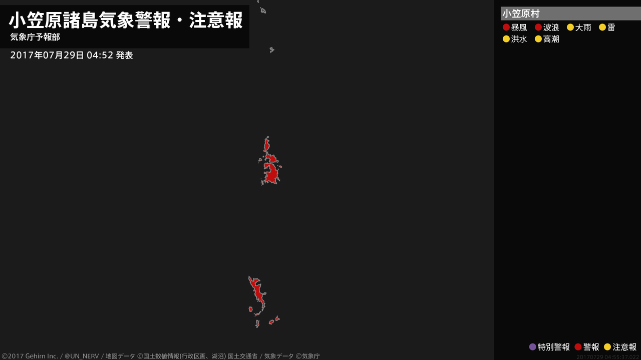 【東京都 気象警報・注意報 2017年07月29日 04:55】