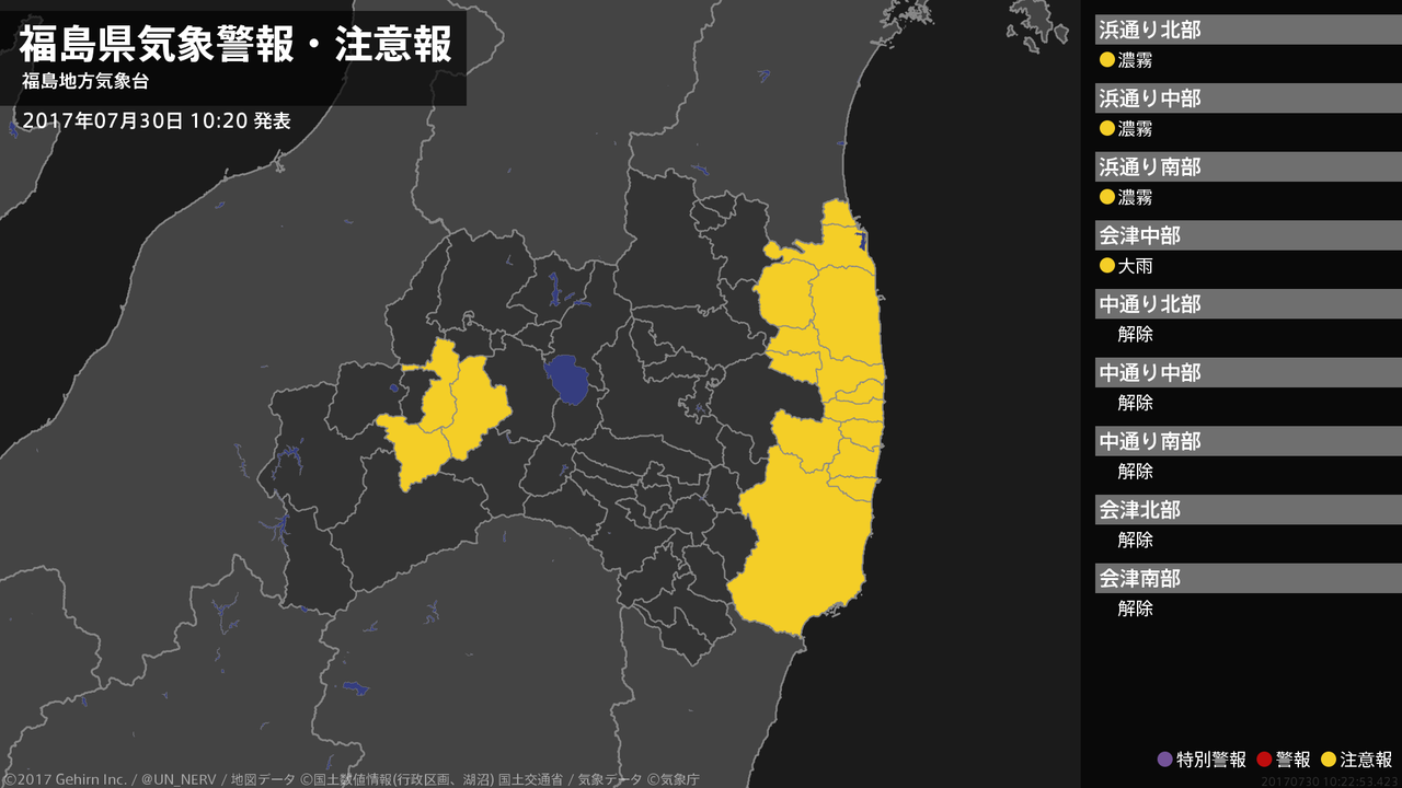 【福島県 気象警報・注意報 2017年07月30日 10:22】
