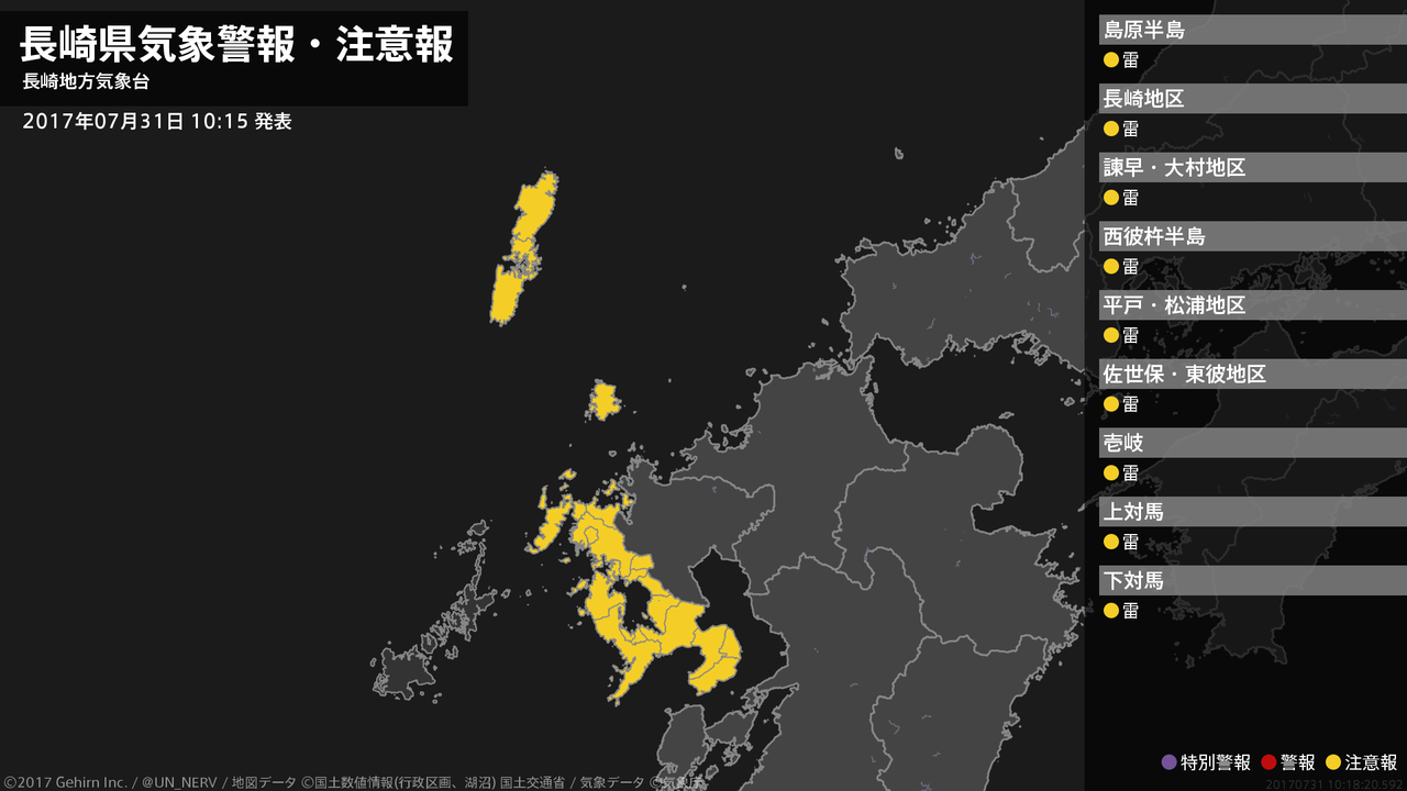 【長崎県 気象警報・注意報 2017年07月31日 10:18】