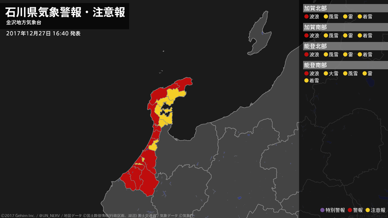 【石川県 気象警報・注意報 2017年12月27日 16:41】