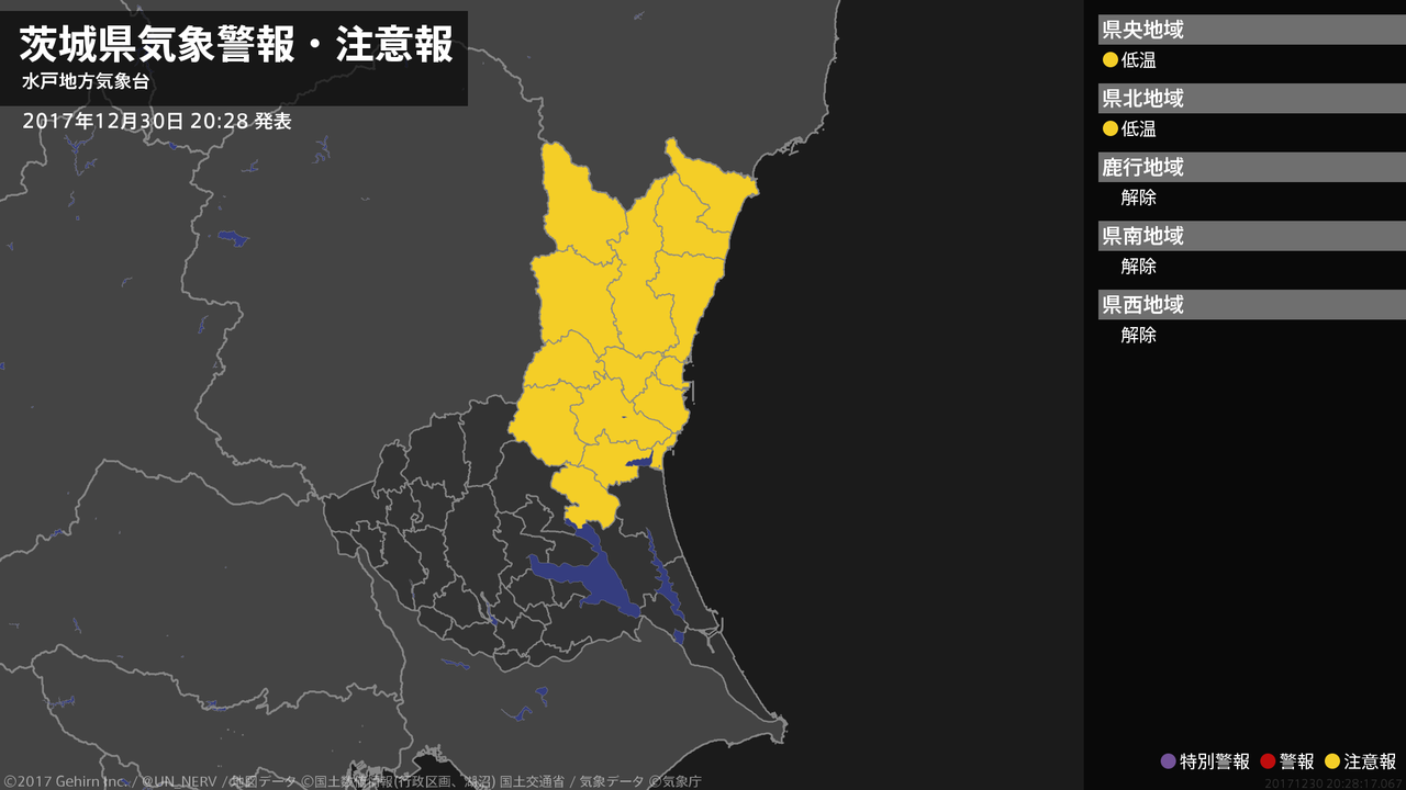 【茨城県 気象警報・注意報 2017年12月30日 20:28】