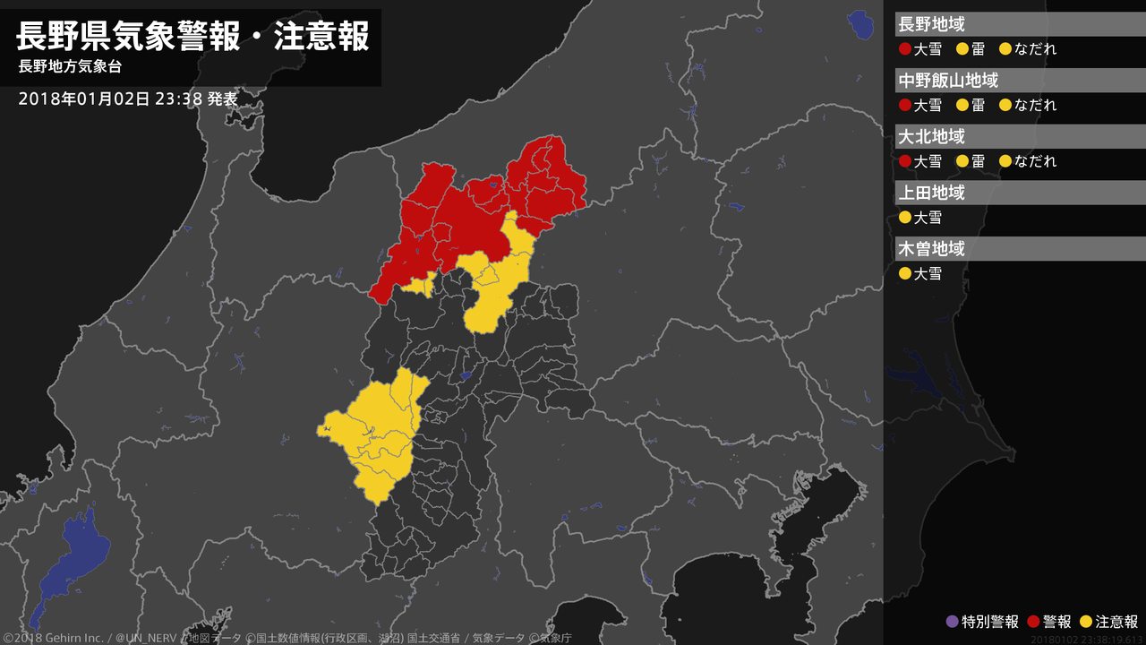 【長野県 気象警報・注意報 2018年01月02日 23:38】