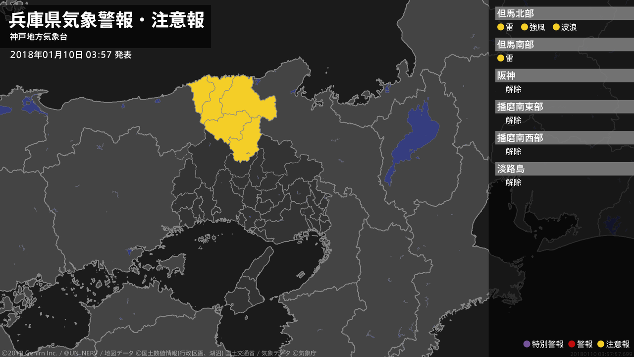 【兵庫県 気象警報・注意報 2018年01月10日 03:58】