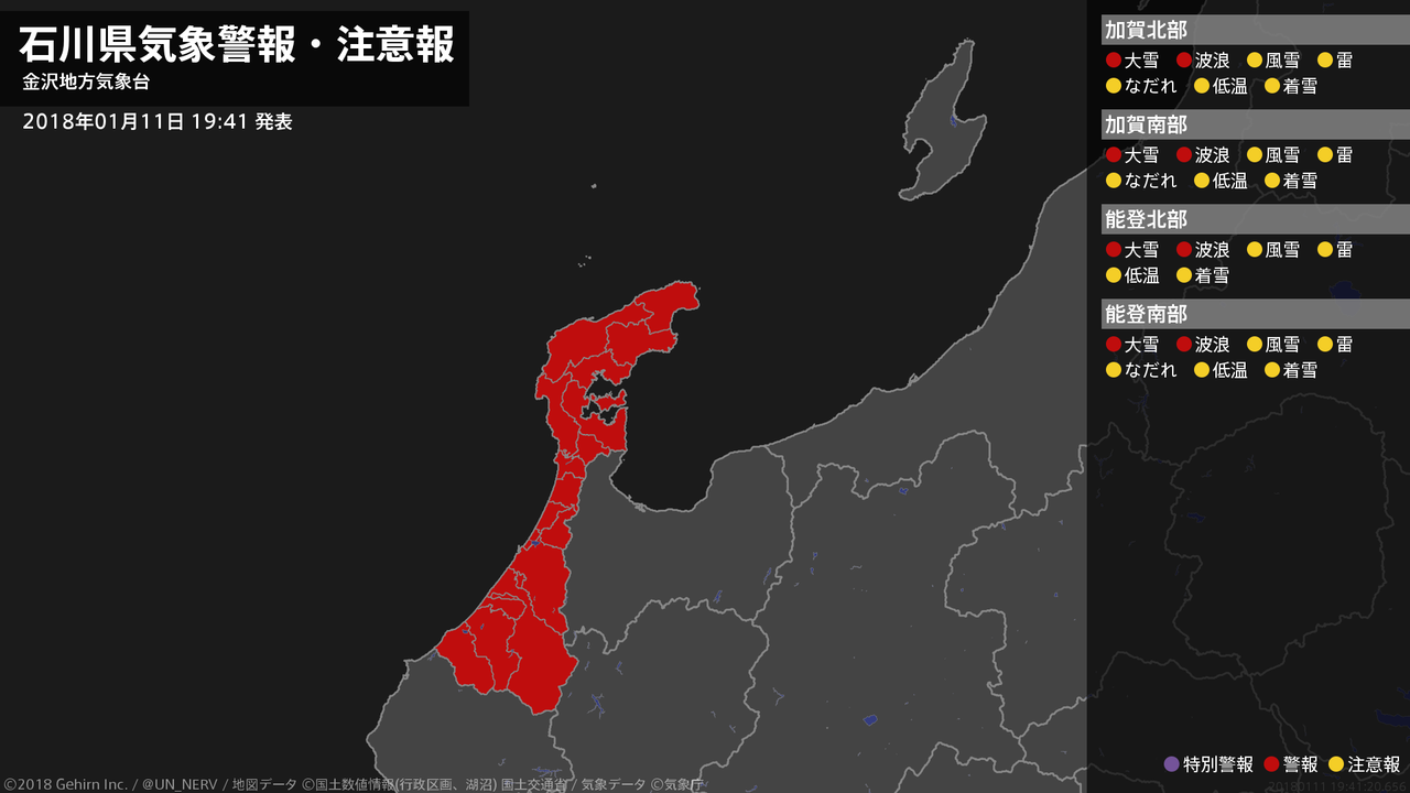 【石川県 気象警報 2018年01月11日 19:41】
