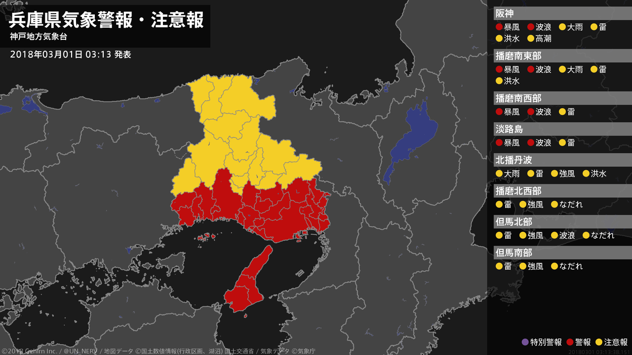 【兵庫県 気象警報 2018年03月01日 03:13】