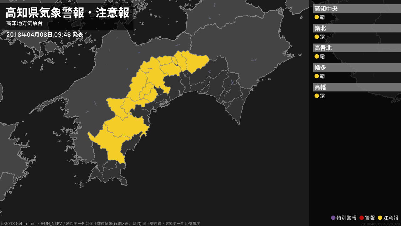 【高知県 気象警報・注意報 2018年04月08日 08:07】注意報を解除します。#気象警報注意報 #高知県