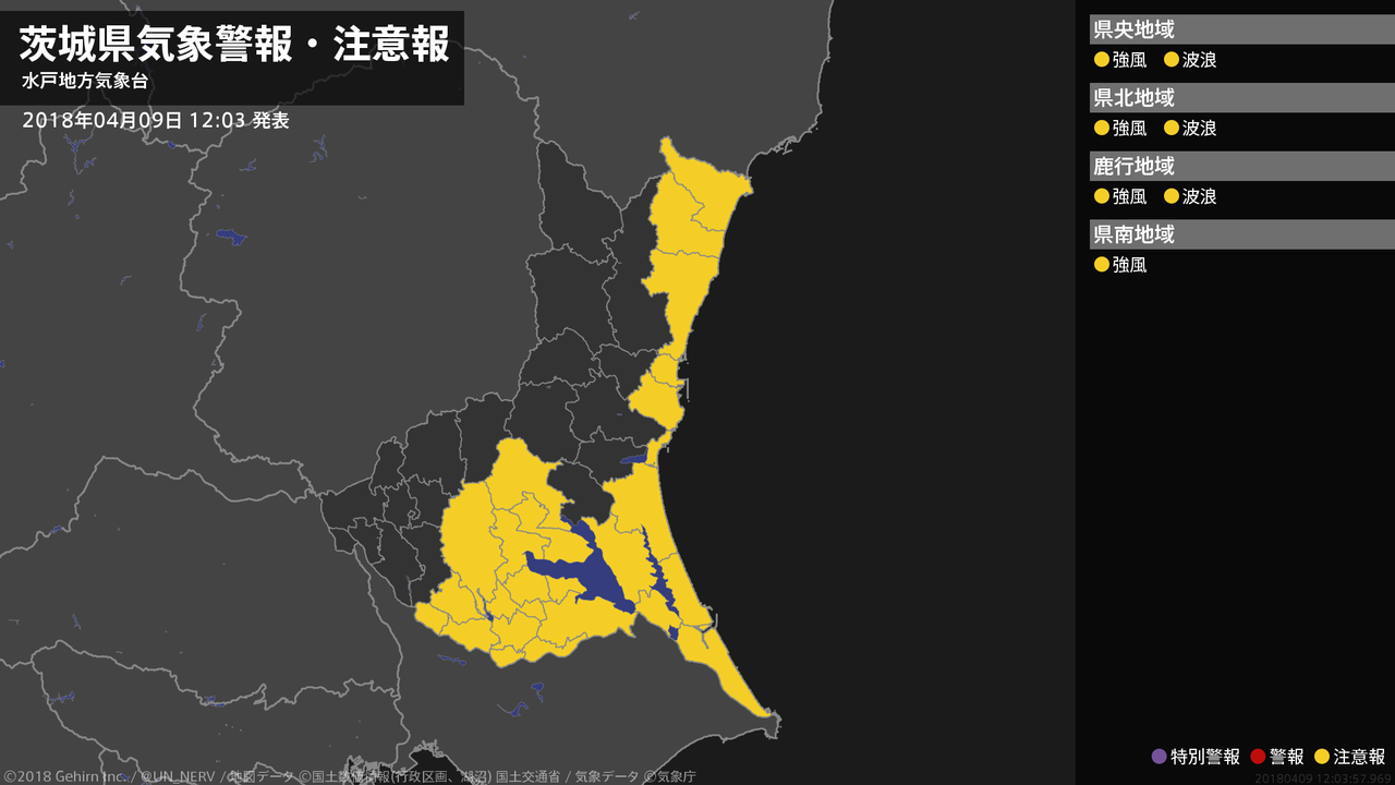 【茨城県 気象警報・注意報 2018年04月09日 12:04】