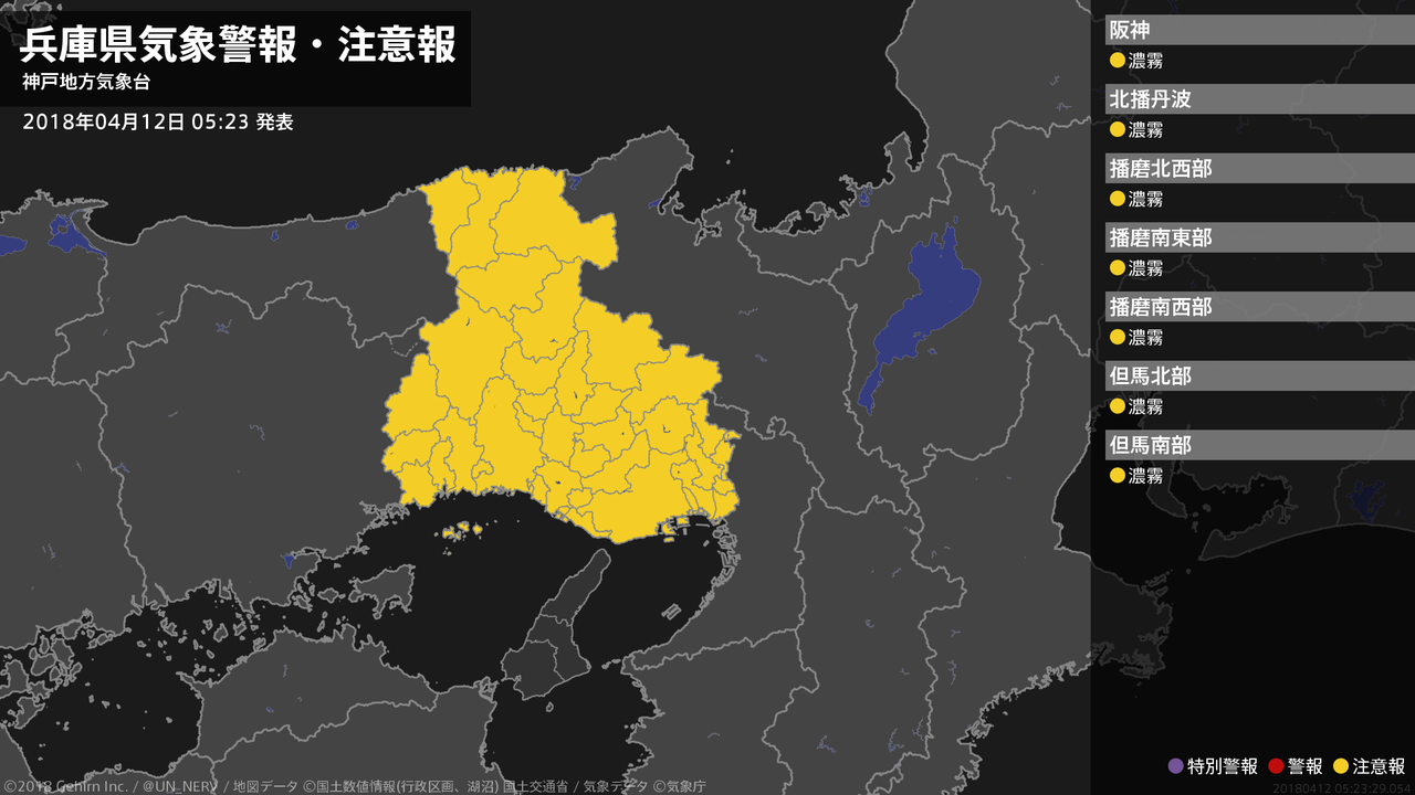 【兵庫県 気象警報・注意報 2018年04月12日 05:23】