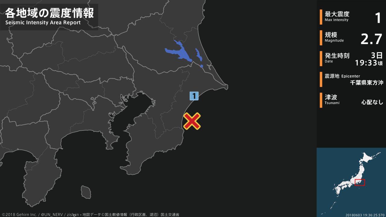【震度・震源速報 2018年6月3日】