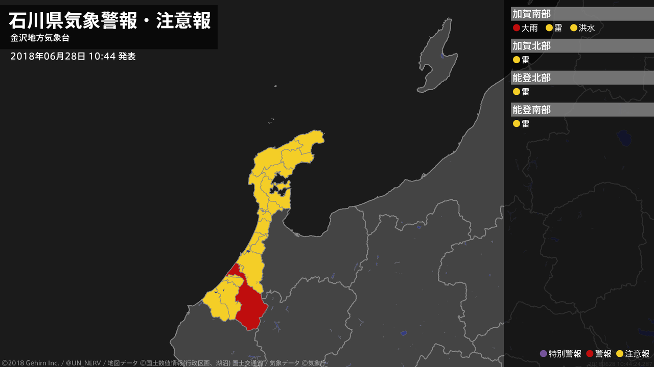 加賀では、28日昼過ぎまで土砂災害に警戒してください。