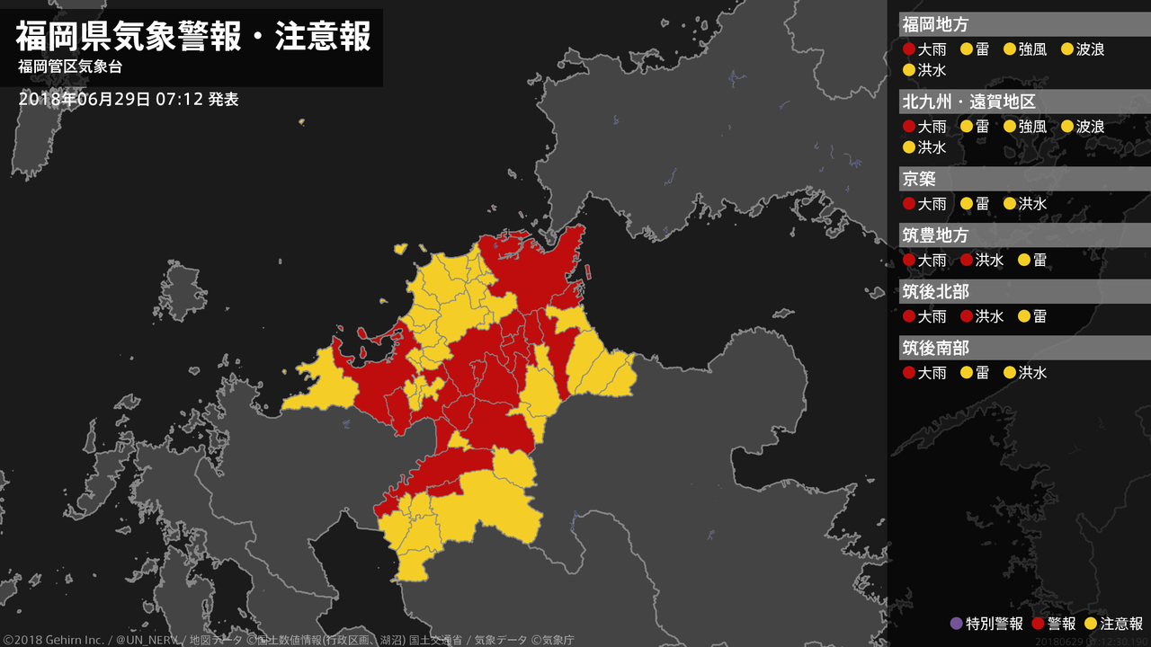 【福岡県 記録的短時間大雨情報 2018年06月29日 07:15】