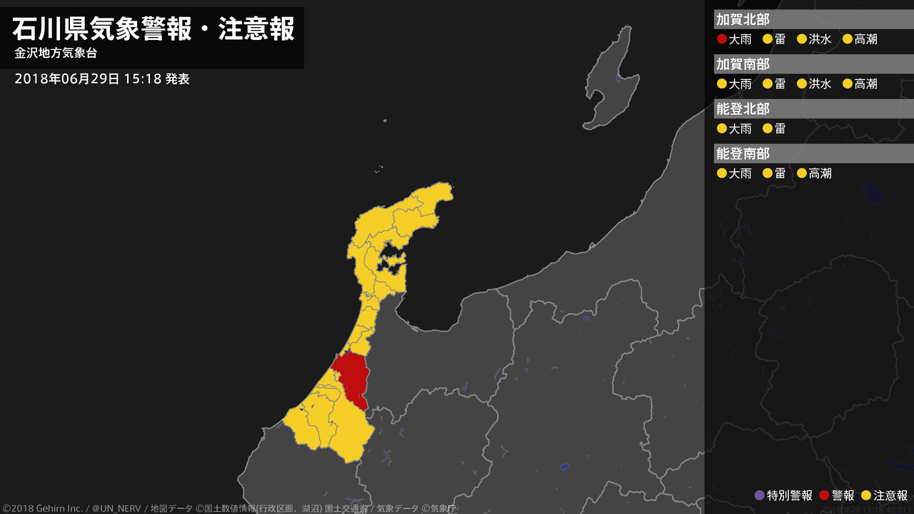 【石川県 気象警報・注意報 2018年06月29日 15:40】