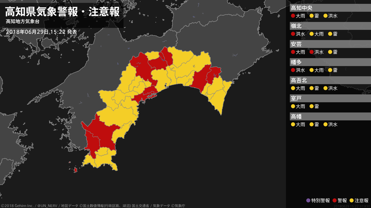 【岐阜県 気象警報 2018年06月29日 15:50】