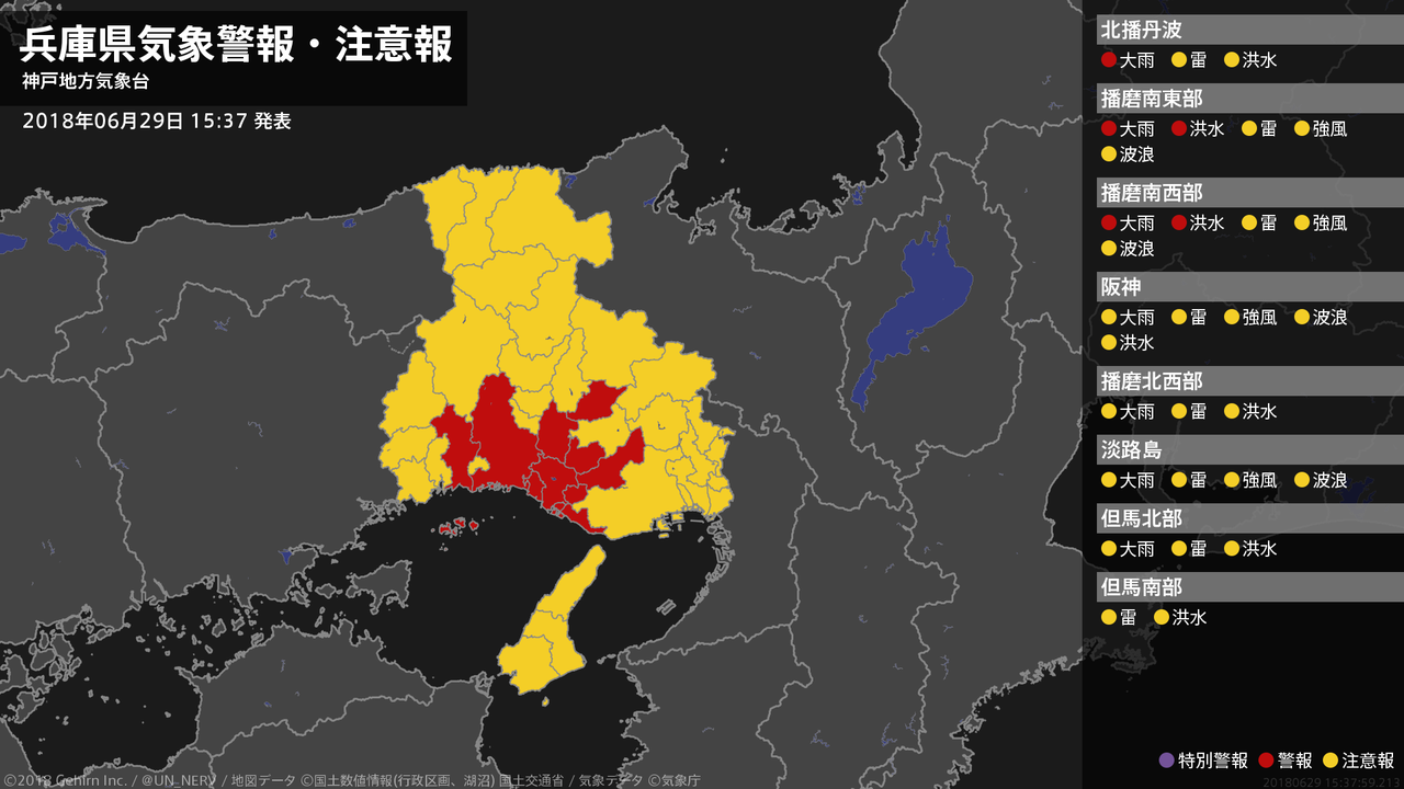 【兵庫県 気象警報 2018年06月29日 15:38】