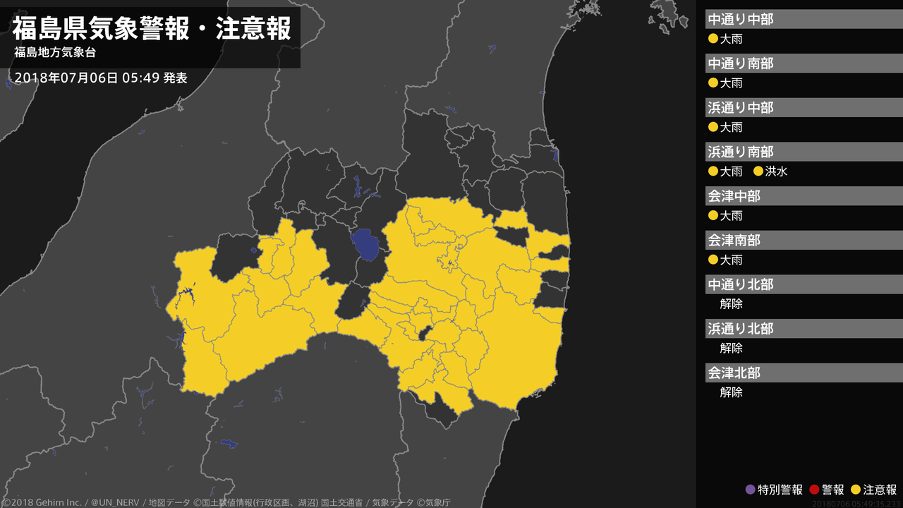 【福島県 気象警報(解除) 2018年07月06日 05:49】