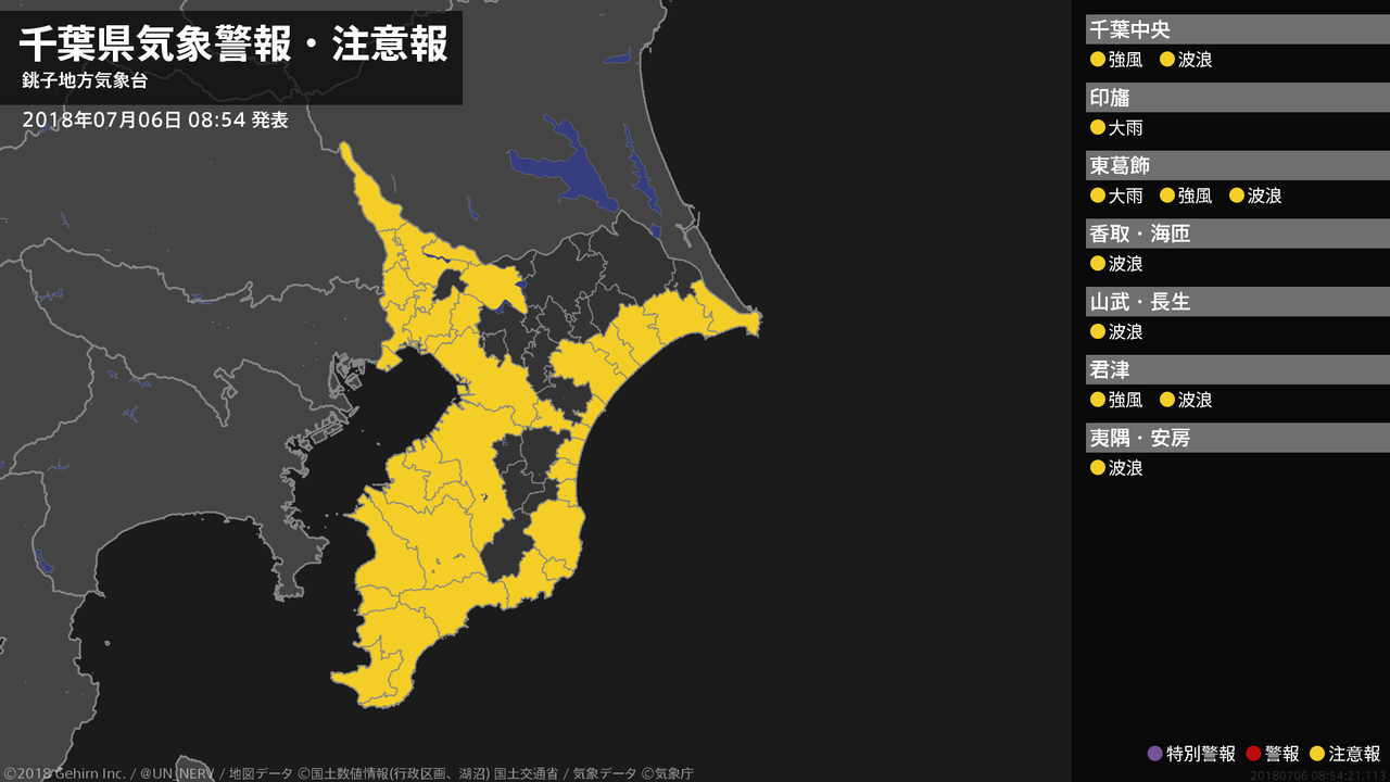 【千葉県 気象警報・注意報 2018年07月06日 08:54】