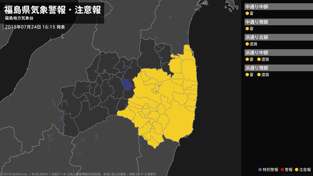 【福島県 気象警報・注意報 2018年07月24日 16:15】