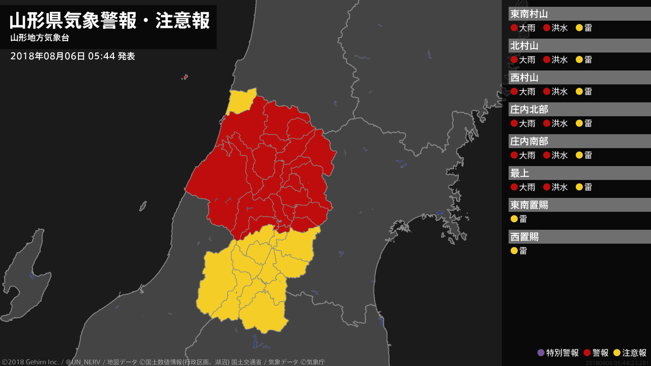【山形県 気象警報 2018年08月06日 05:38】