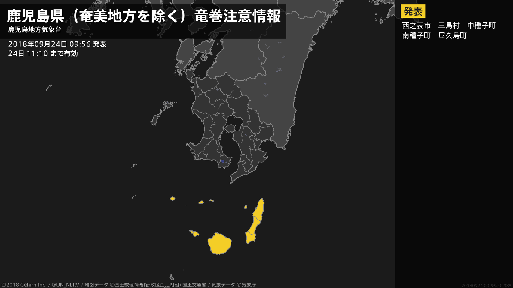 【奄美地方(鹿児島県) 気象警報・注意報 2018年09月24日 10:32】奄美地方では、24日夕方まで土砂災害や低い土地の浸水、河川の増水に警戒してください。#気象警報注意報 #奄美地方