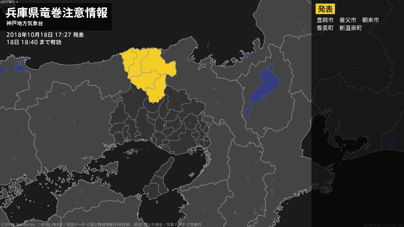 【兵庫県 気象警報・注意報 2018年10月18日 17:53】