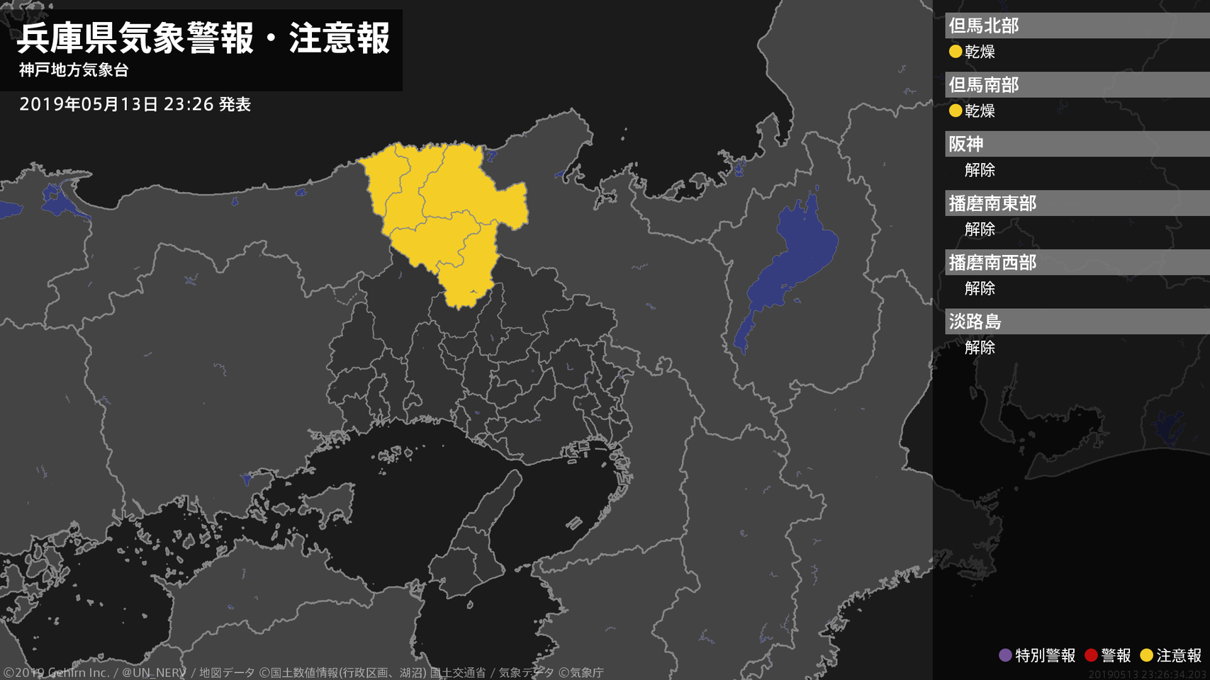 【兵庫県 気象警報・注意報 2019年05月13日 23:26】