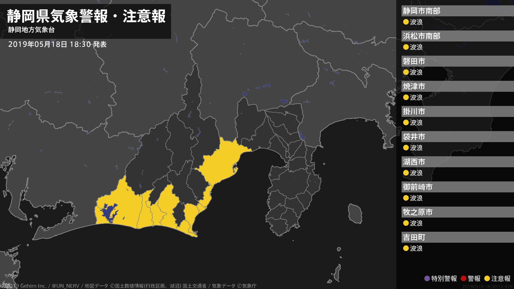 【静岡県 気象警報・注意報 2019年05月18日 18:30】