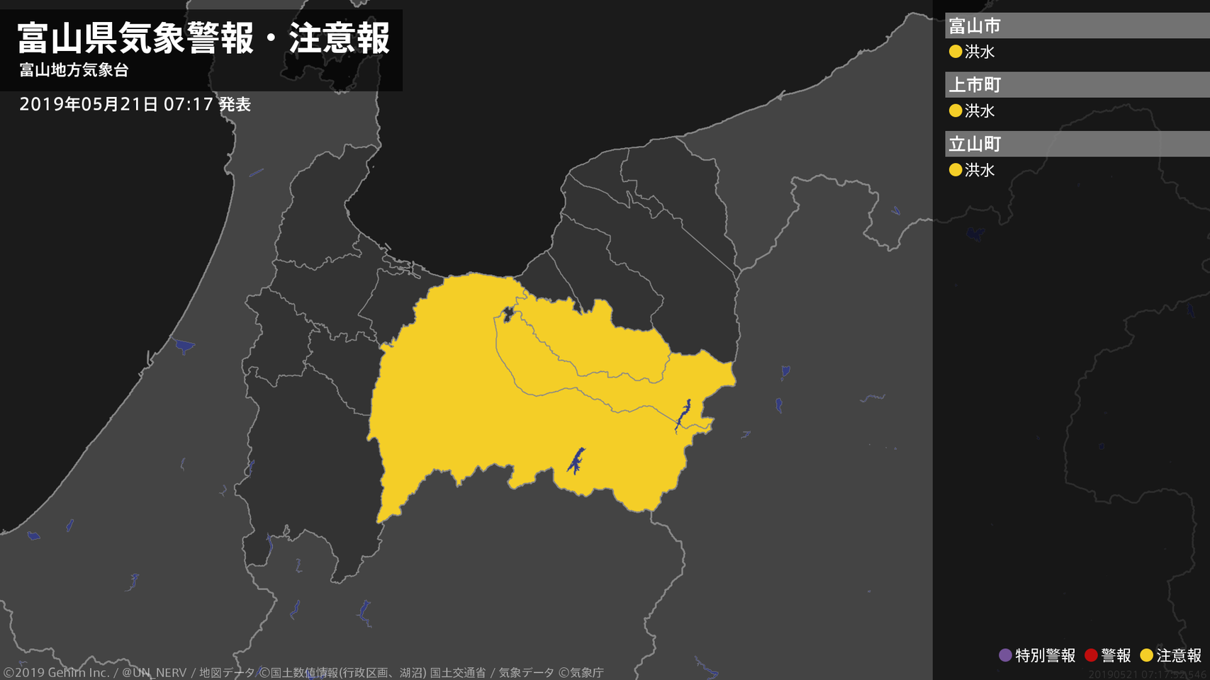 【富山県 気象警報・注意報 2019年05月21日 07:17】