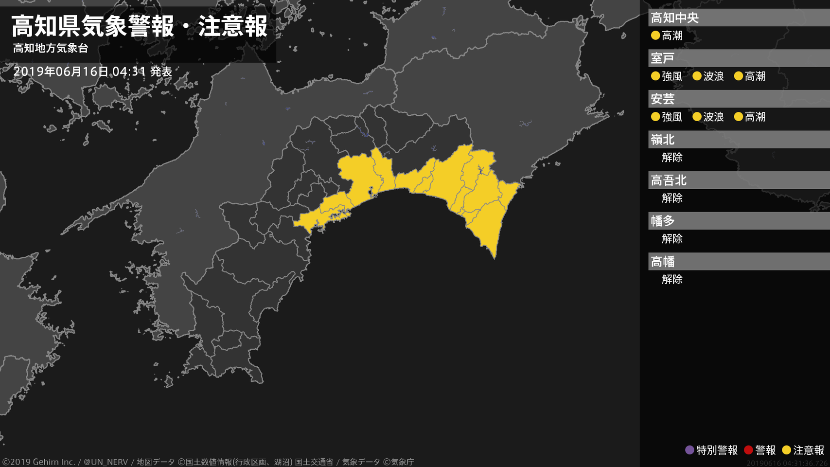 【大雨と暴風及び高波に関する全般気象情報 2019年06月16日 04:59】