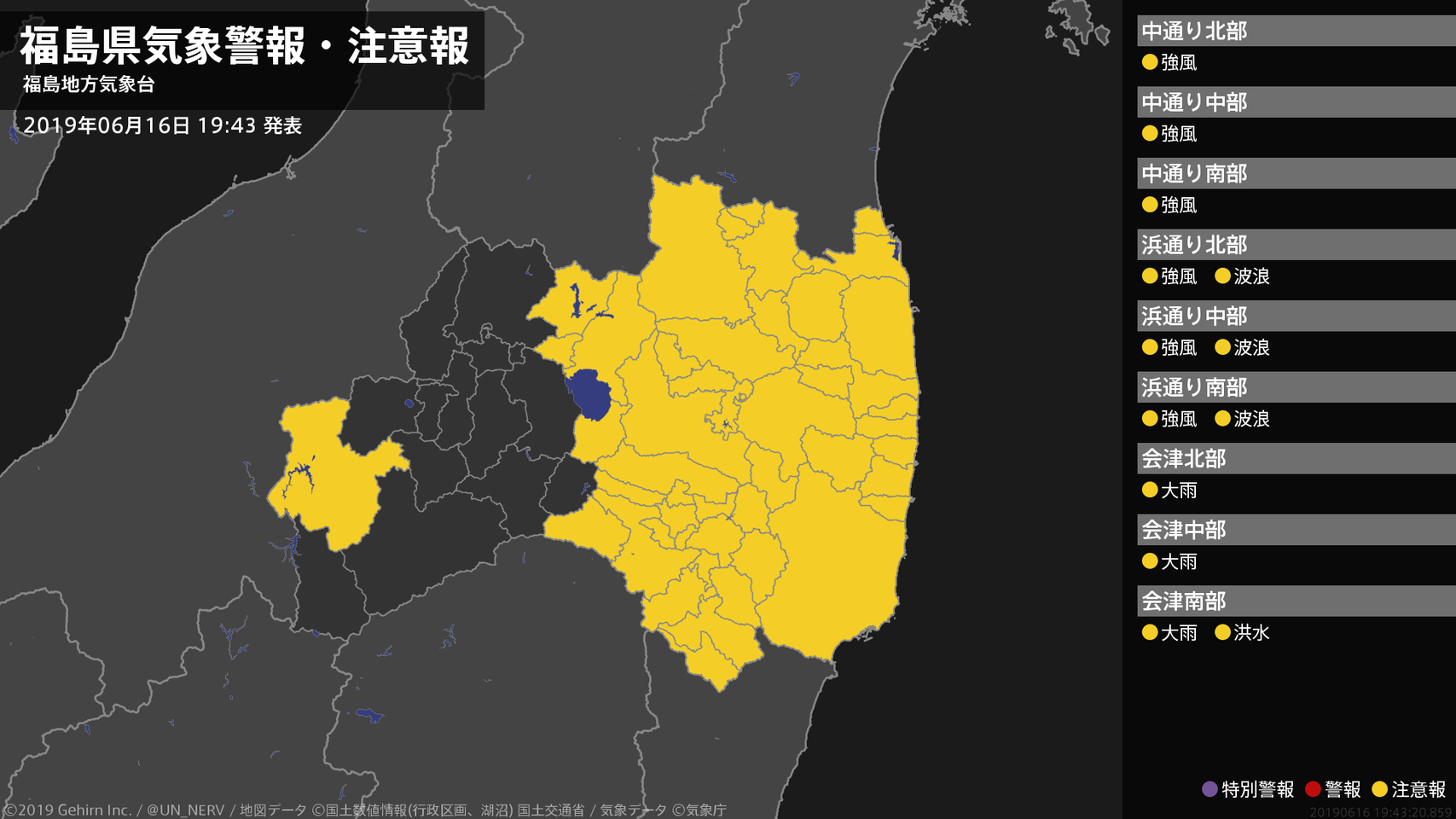 【福島県 気象警報・注意報 2019年06月16日 19:43】