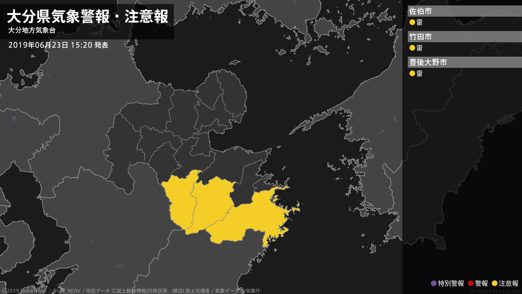 【大分県 気象警報・注意報 2019年06月23日 15:20】