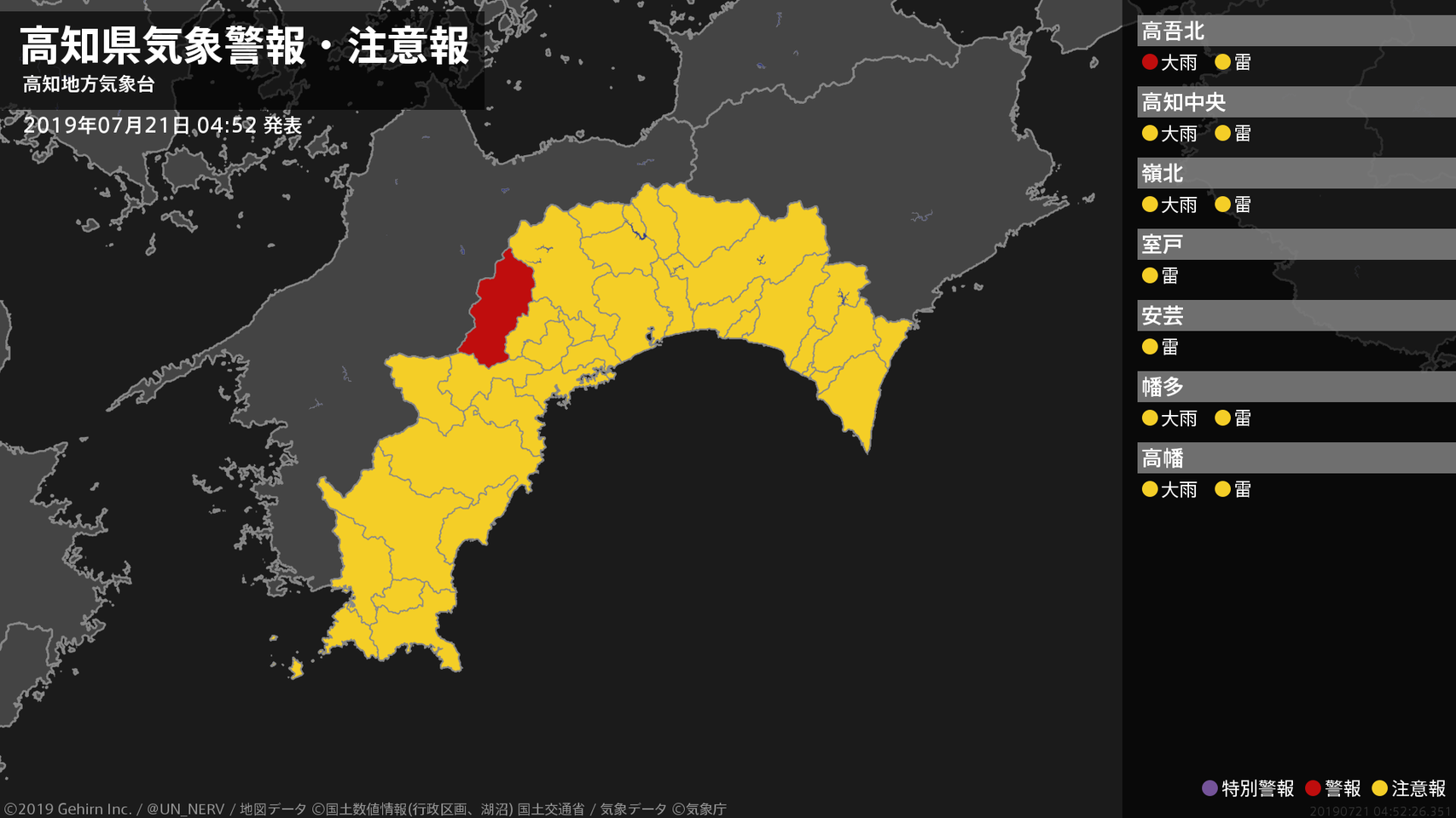 西日本ではこれまでの大雨で地盤の緩んでいる所があります。また、西日本では21日夕方にかけて局地的に雷を伴った非常に激しい雨が降り、大雨となるおそれがあります。土砂災害に厳重に警戒し、低い土地の浸水、河川の増水や氾濫に警戒してください。