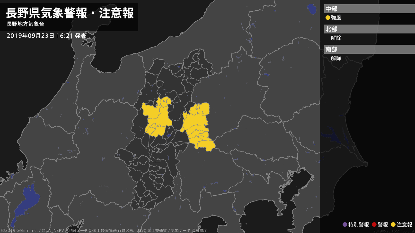【長野県 気象警報・注意報 2019年09月23日 16:21】