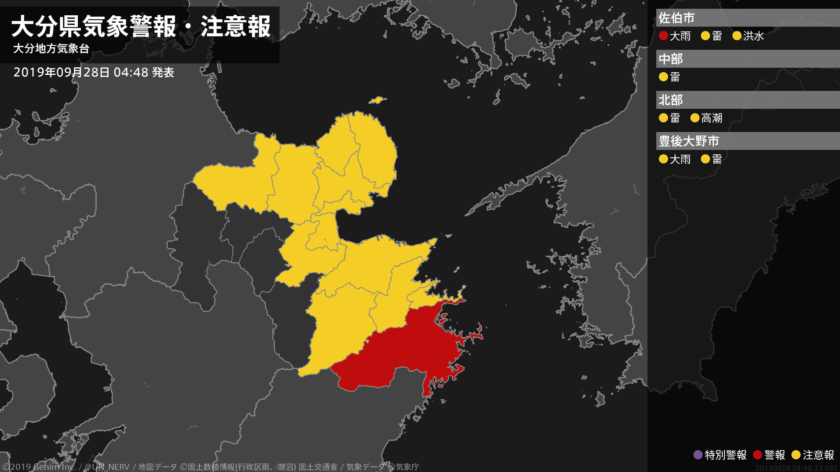 【大分県 気象警報・注意報 2019年09月28日 04:48】