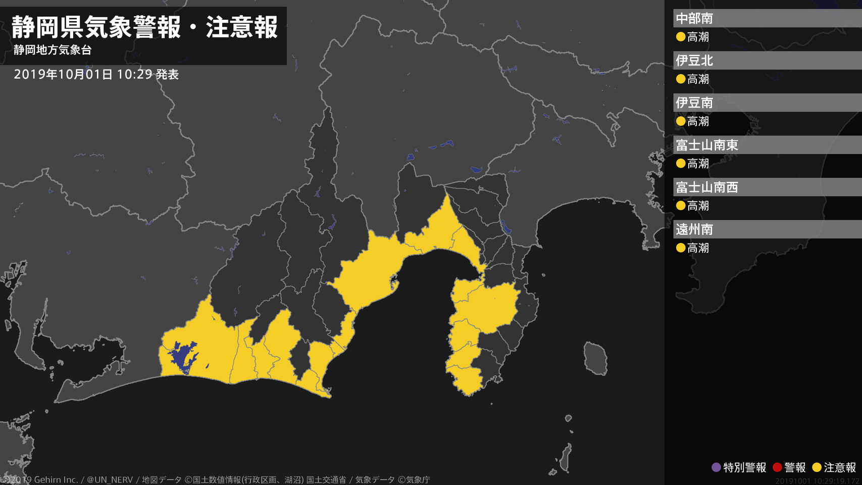 【静岡県 気象警報・注意報 2019年10月01日 10:29】