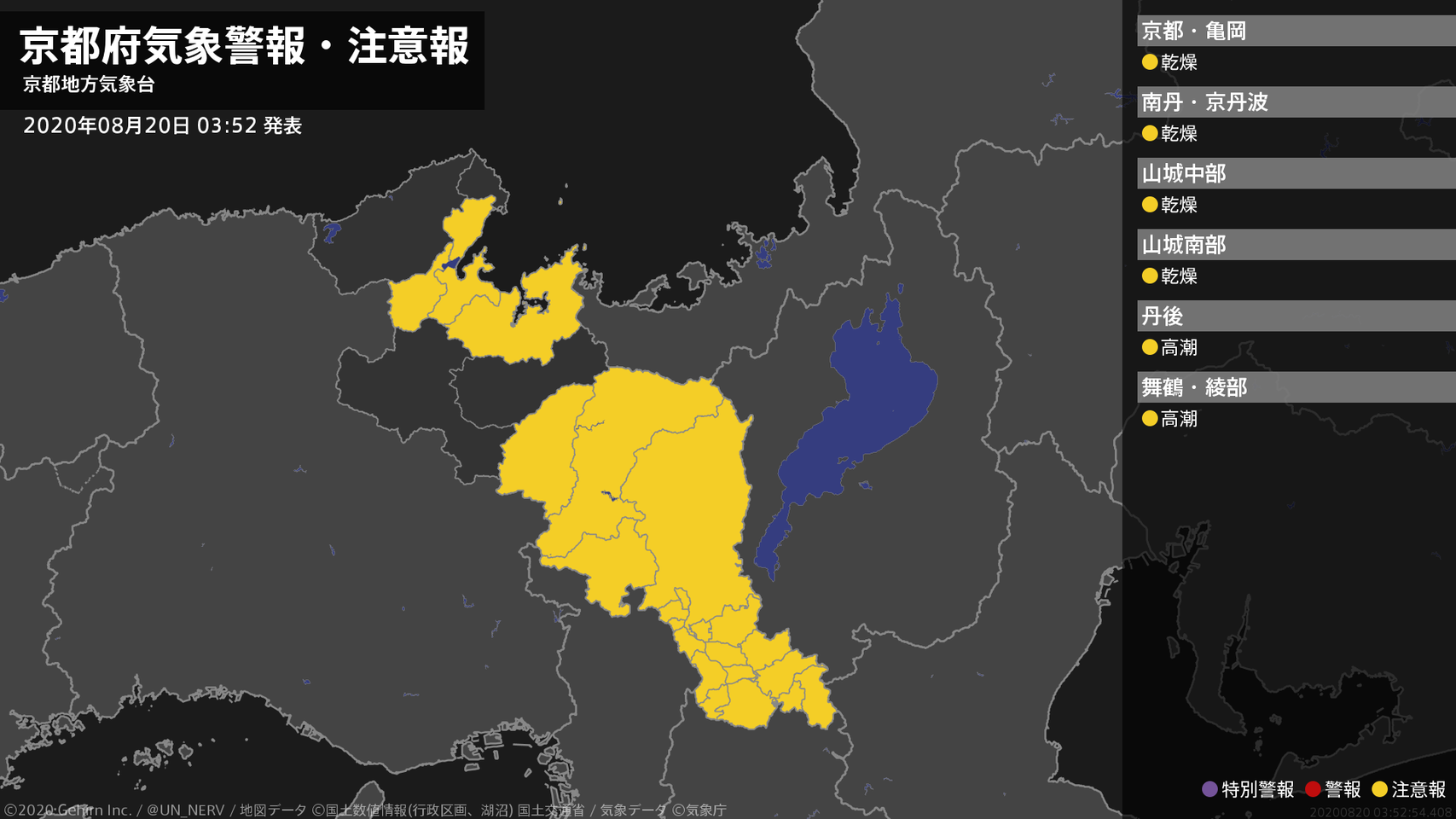 【京都府 気象警報・注意報 2020年08月20日 03:52】